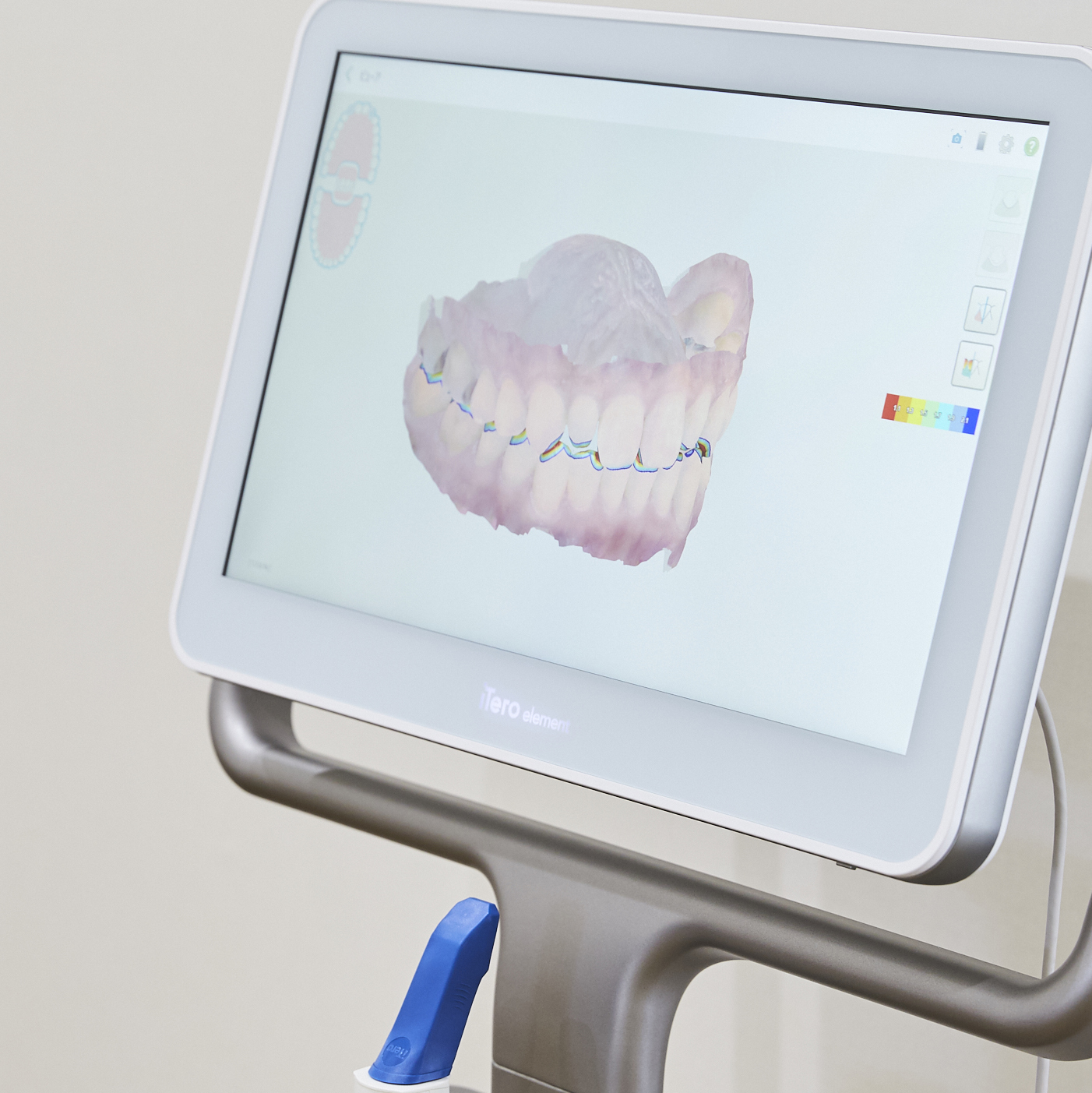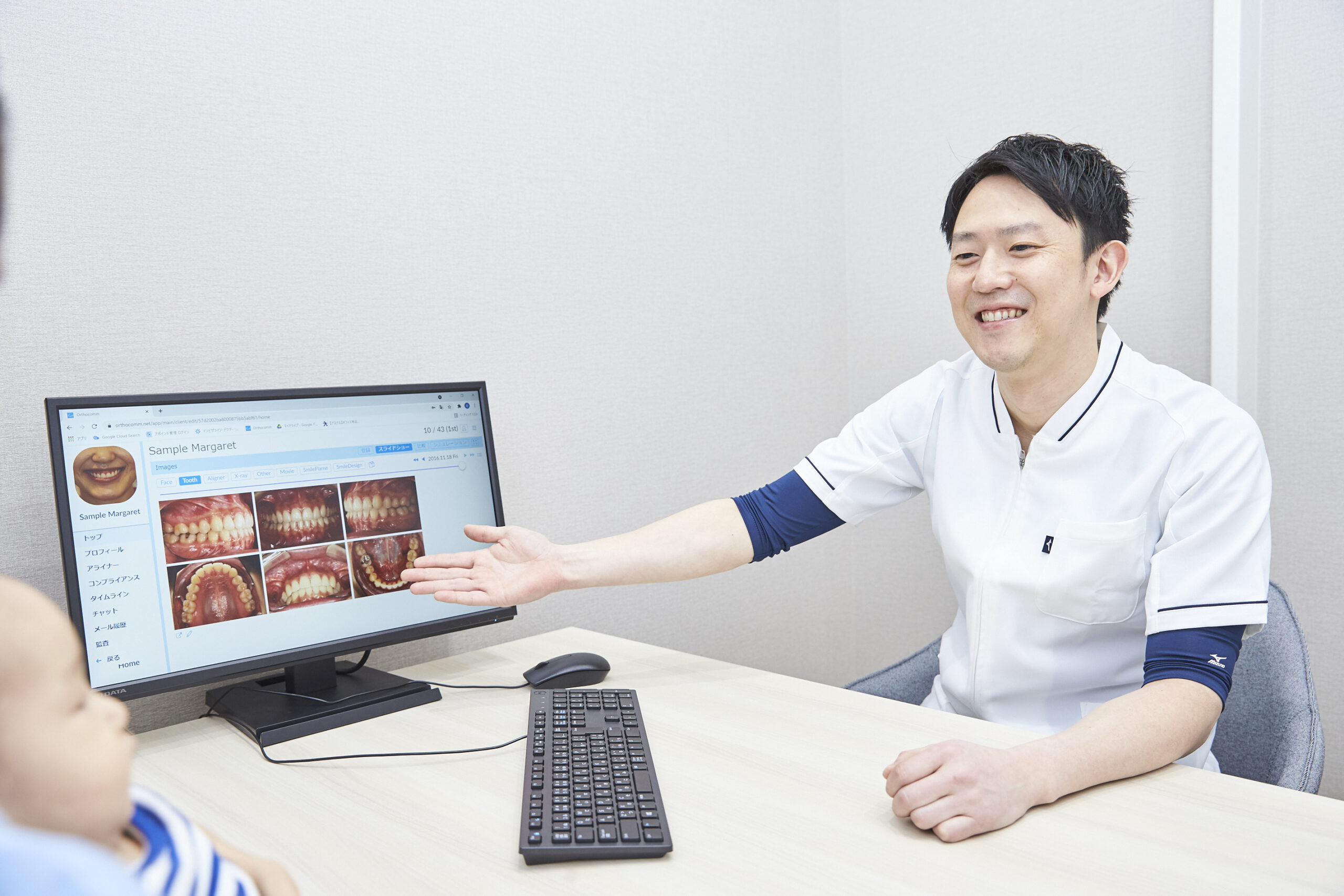 iteroを使い患者さんの歯並びをスキャンします。スキャンしたデータをもとに3DCGデータを作成。itero端末上で患者さんの口内を再現します。 取得した3Dスキャンデータをもとに矯正治療の経過を画面上で再現します。